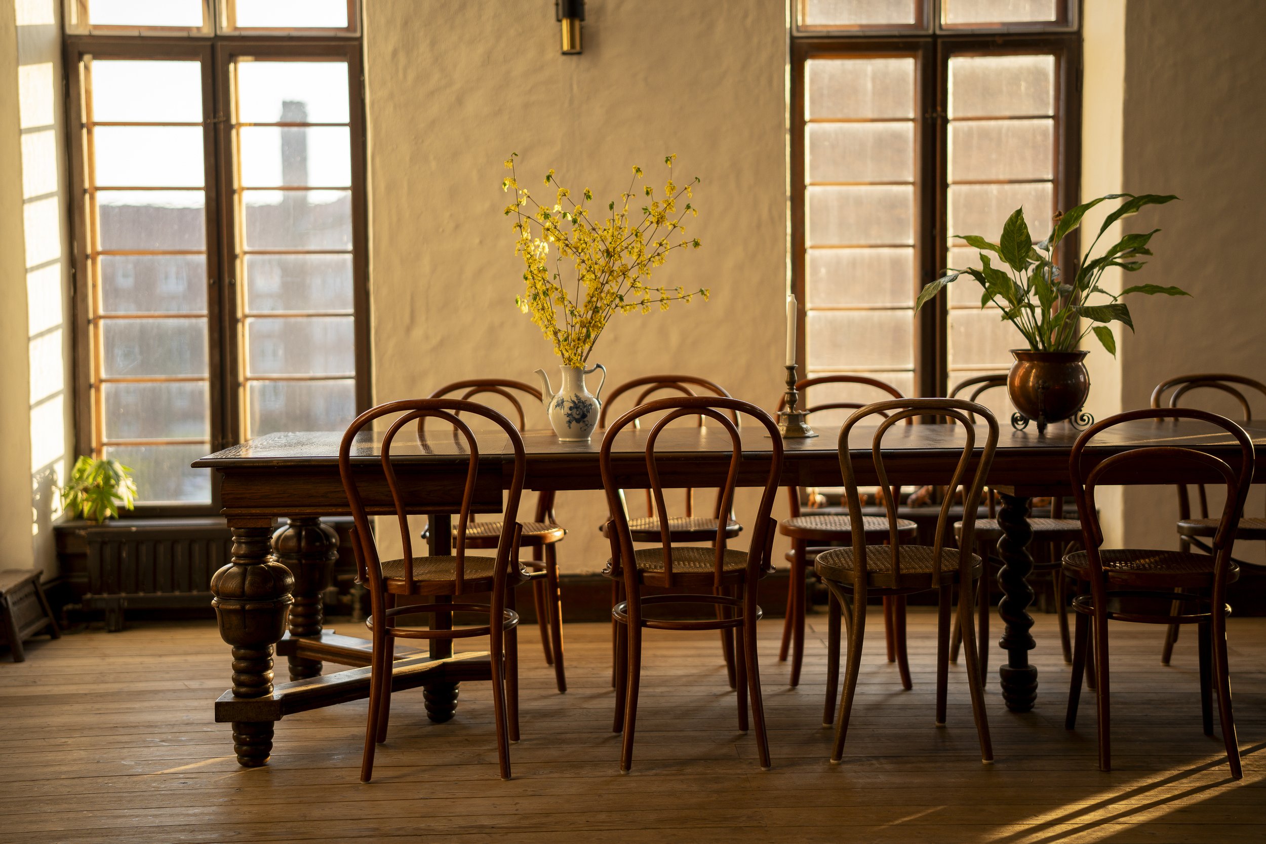 The fireplace room on the ground floor can be set up for long table dinners for up to 30 guests - a warm and memorable setting for private dinners, family gatherings or small company events.